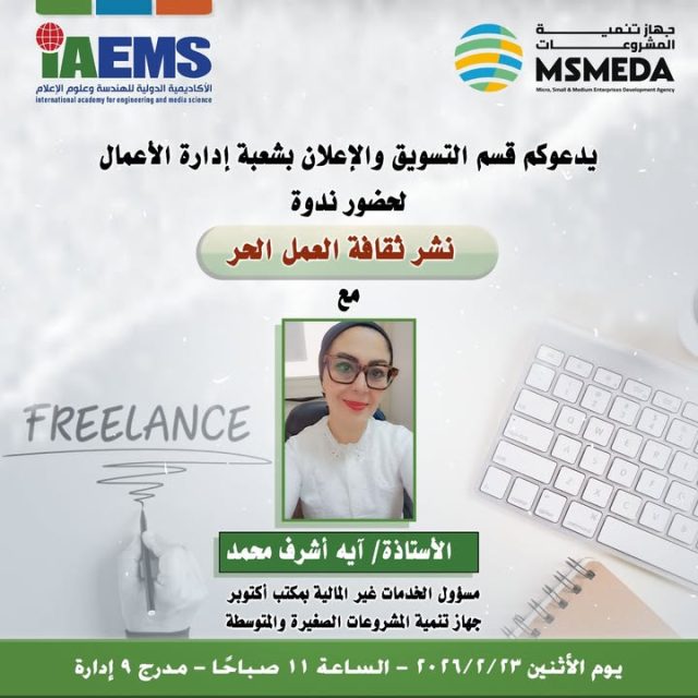 فوز قسم الإنتاج الإعلاني بشعبة الإعلام بالأكاديمية الدولية للهندسة وعلوم الإعلام بجائزة ملتقي الإعلام العربي للشباب فاز مشروع (سبع صنايع) لطلاب قسم الإنتاج الإعلاني بالمركز الثالث في الملتقي الإعلامي العربي في دورته العاشرة الذي نظمته جامعة مصر للعلوم والتكنولوجيا برعاية جامعة الدول العربية، وحيث شارك أكثر من 240 عمل من كليات ومعاهد الإعلام، وقدم الطلاب الآتي أسماؤهم " محمد محمود عبد الفتاح - عبد الرحمن جمال حسنى - كريم محمد سعيد - عبد الرحمن محمد ابراهيم فرحات - نورهان ايمن حسان - ميار ايمن محمد - فرح هشام محمد - اسراء عبد المقصود عيد - ريم مصطفى فاروق - ملك محمد فؤاد - فرح عادل السيد - منة الله ناصر فؤاد - مصطفى احمد مصطفى - اروى رأفت احمد مسعد - مكرينا ممدوح كمال - يوستينا عادل انور - كاريمان محمود صلاح - رفقة اشرف زكريا - ساندى امجد سلامة - يارا محمد صبحى - عبدالرحمن ماهر - فادي عادل ابراهيم توفيق - كريم سعد محمد" تحت إشراف أ.م.د. مني عبد العزيز رئيس القسم وقد تسلم الجائزة أ.د. خالد عبد الجواد – م.م. أشرف خالد والطلاب المشاركين. ويتناول المشروع ( حملة توعوية للدولة بأهمية تشجيع رواد الأعمال وأصحاب المشاريع الصغيرة من خلال مبادرة تسعى لتوفير كافة الموارد التي يحتاجها رواد الأعمال لتحقيق أحلامهم المستقبلية وطموحاتهم). ويتقدم أ.د. عادل عبد الغفار - مدير الأكاديمية بالتهنئة للطلاب وقسم الإنتاج الإعلاني متمنياً لهم دوام التوفيق والنجاح مؤكداً علي أن مشاركة شعبة علوم الإعلام في الأنشطة المجتمعية والمساهمة في تقديم نماذج مشرفة في العمل الإعلامي كنماذج لطلاب الإعلام المتميزين في الشعبة.